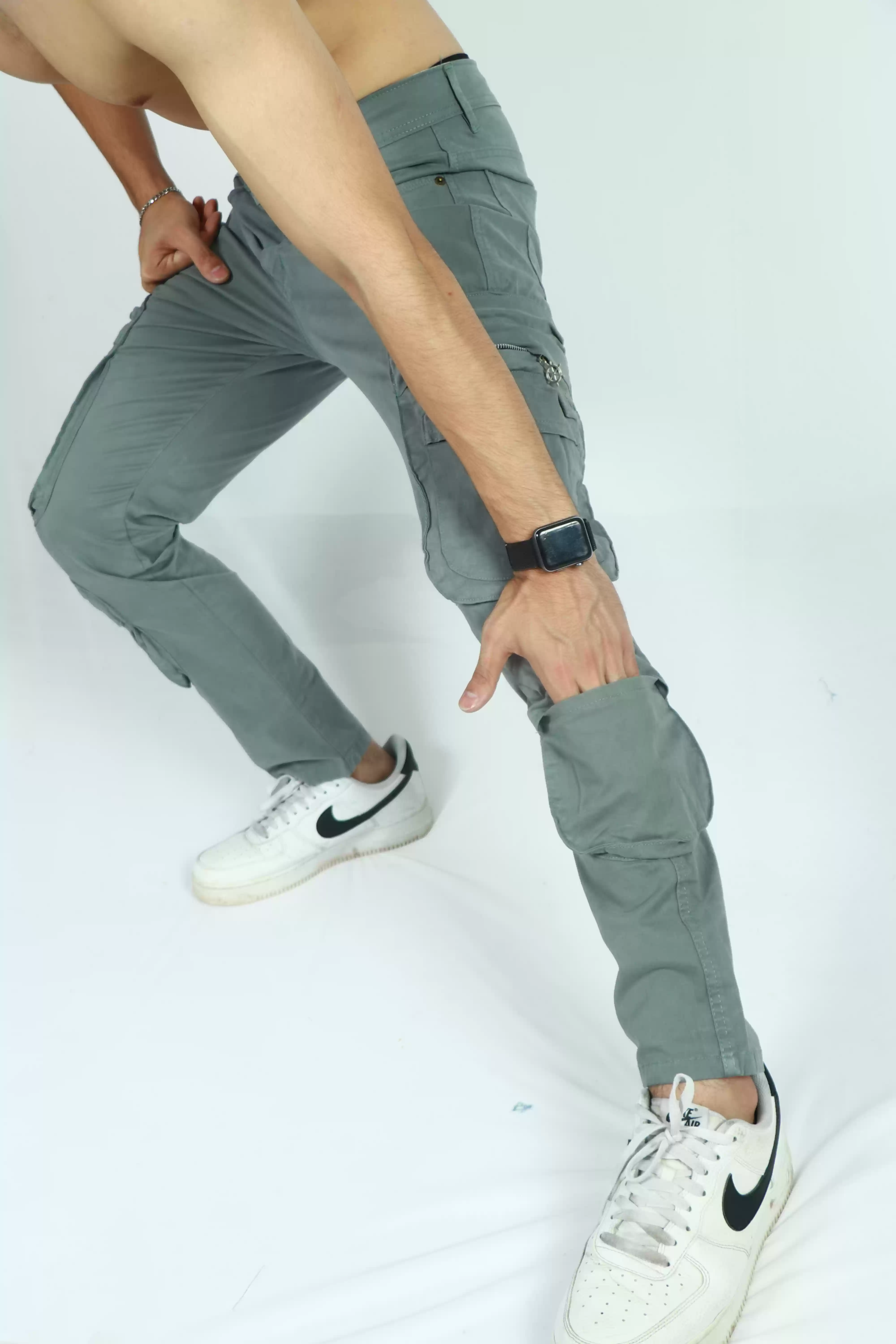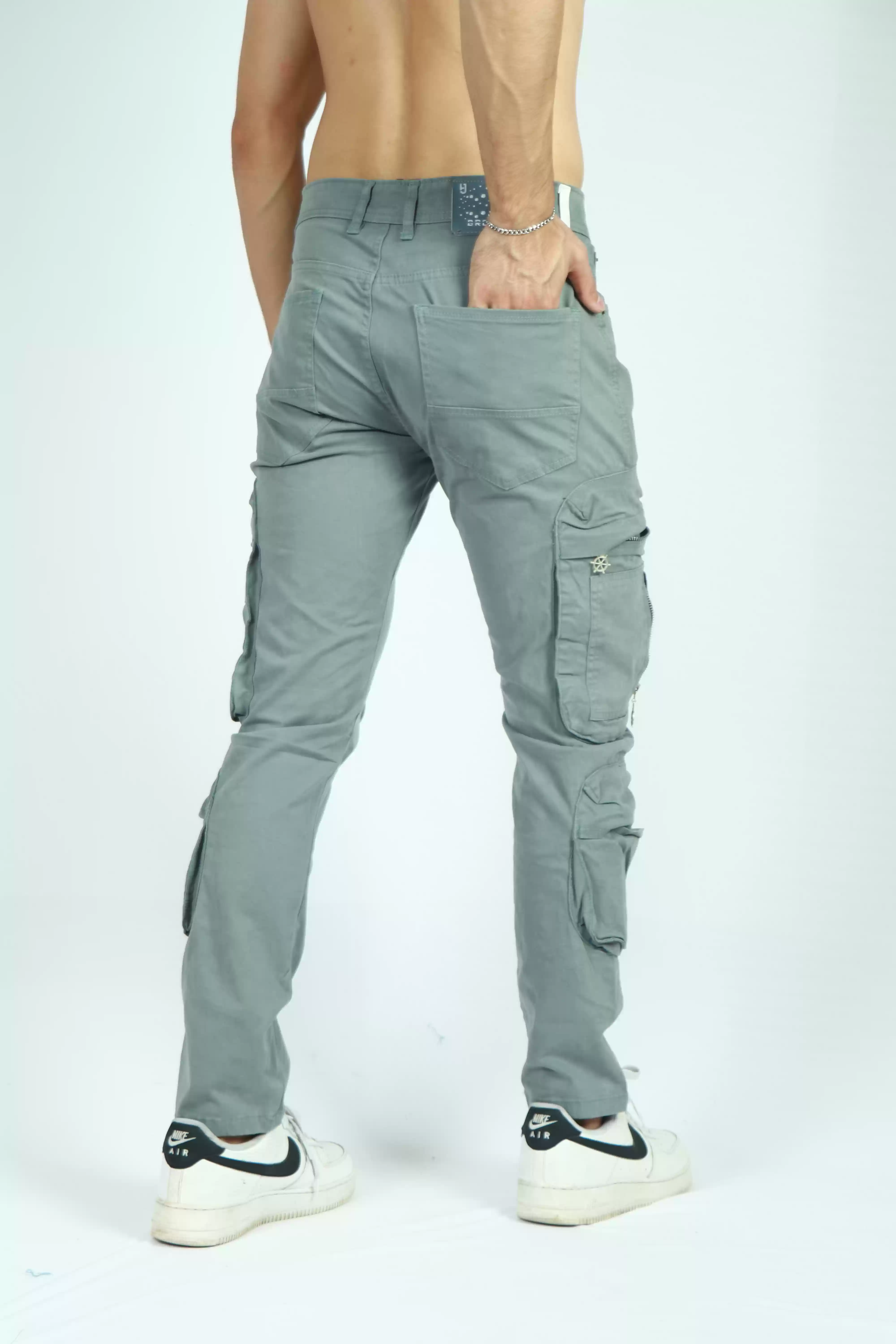 Elevate your casual style with our Blueish Grey Regular Fit Cotton Cargo from Brooklin. Crafted from high-quality cotton, these cargos offer superior comfort and breathability, making them perfect for all-day wear. The versatile bluish grey hue effortlessly complements any wardrobe, while the regular fit ensures a relaxed yet tailored look.