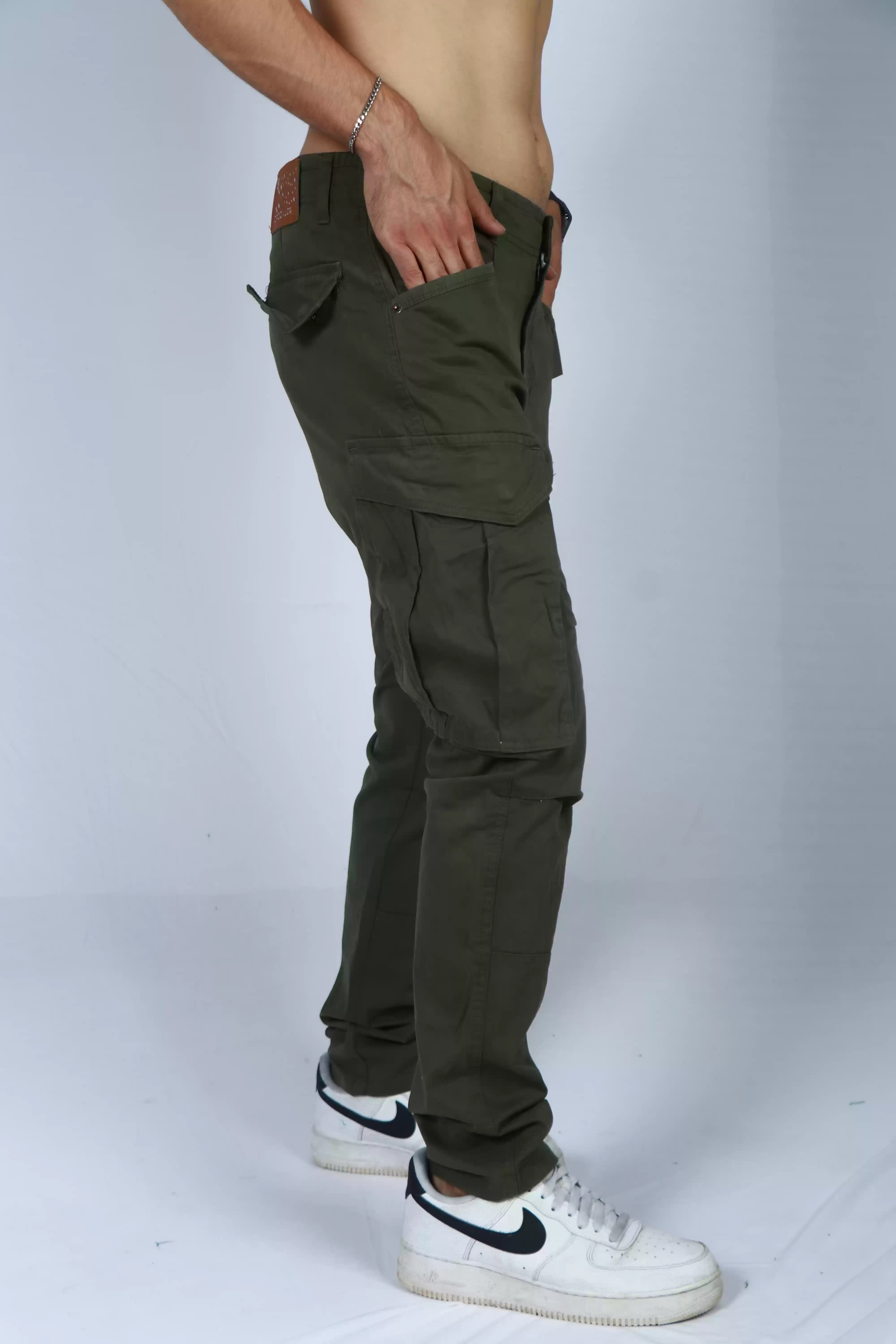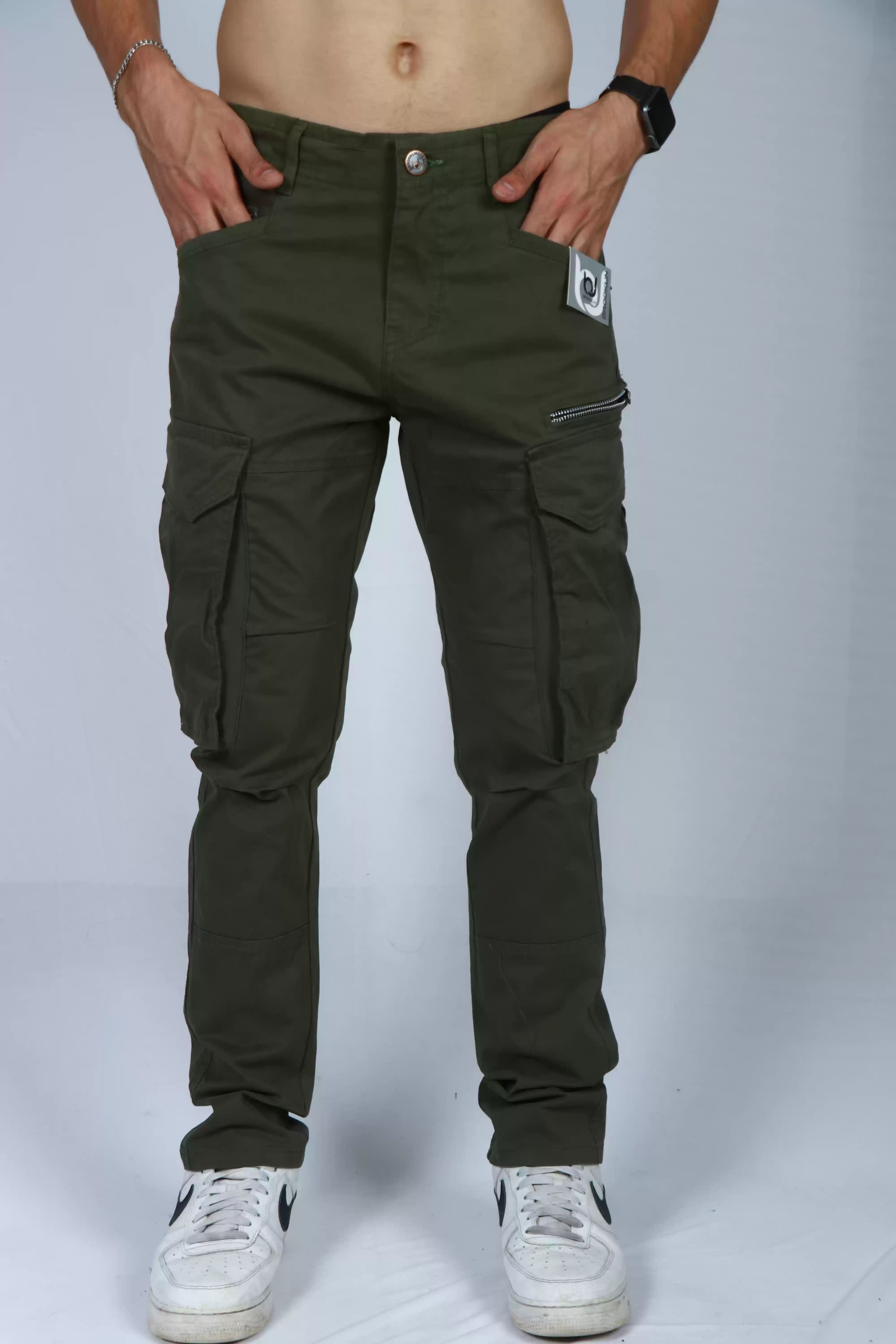 Elevate your casual style with our Dark Green Cotton Regular Fit Cargos in Brooklin. Crafted from high-quality cotton, these cargos offer both comfort and durability for your everyday adventures. The rich dark green hue adds a touch of sophistication, making them versatile enough to pair with any top.