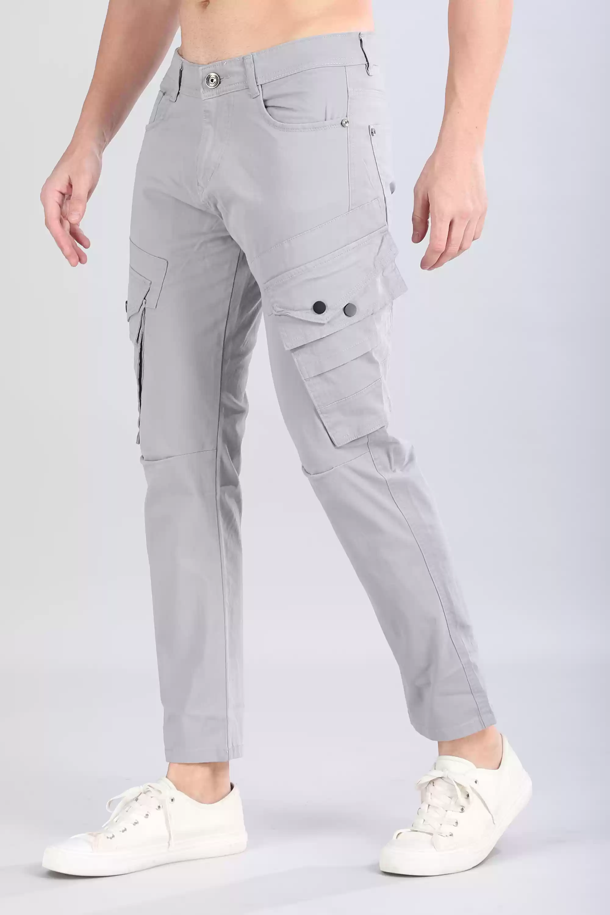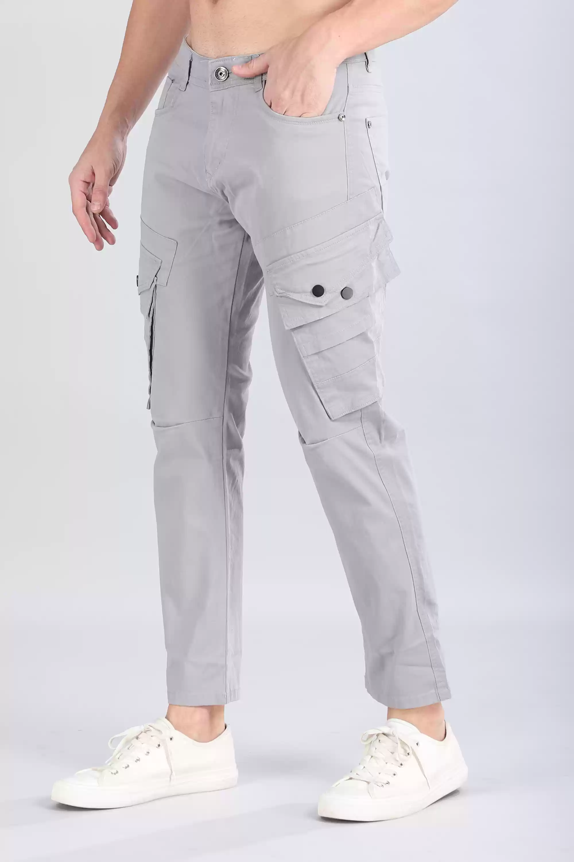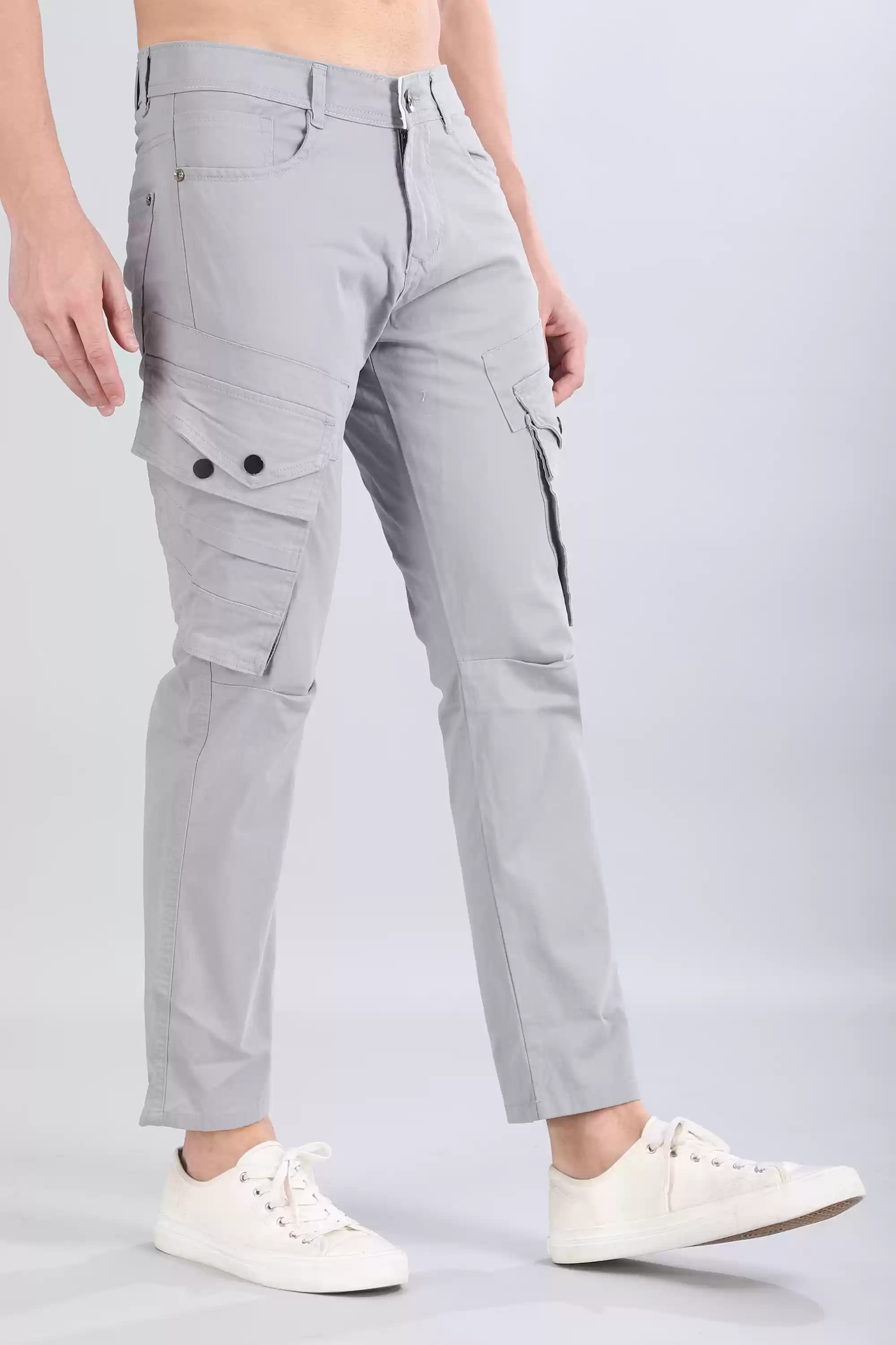 LIGHT GREY COTTON CARGO STRAIGHT FIT